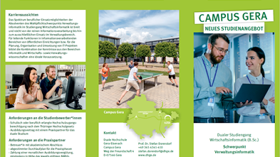 Am 17. Juni 2021 führt die Duale Hochschule Gera-Eisenach zwischen 10:00 und 12:00 Uhr eine Informationsveranstaltung zum neuen dualen Studienangebot Verwaltungsinformatik durch. Die digitale…