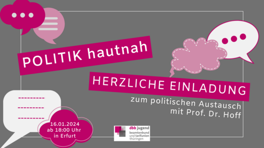 Wir laden Euch herzlich zu einem politischen Austausch gemeinsam mit Prof. Dr. Hoff (Minister für Kultur, Bundes- und Europaangelegenheiten und Chef der Staatskanzlei) am 16. Januar 2024 ein.